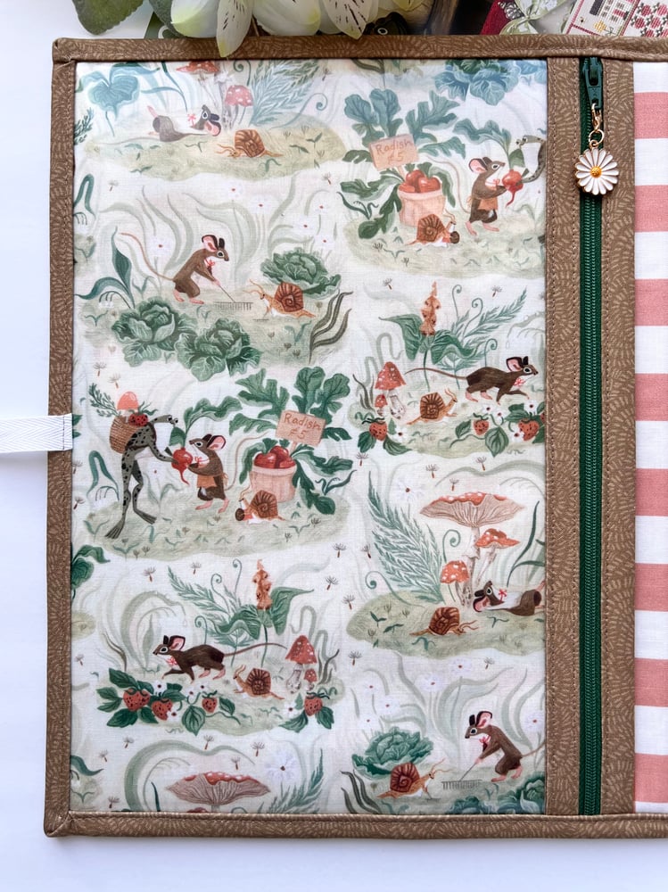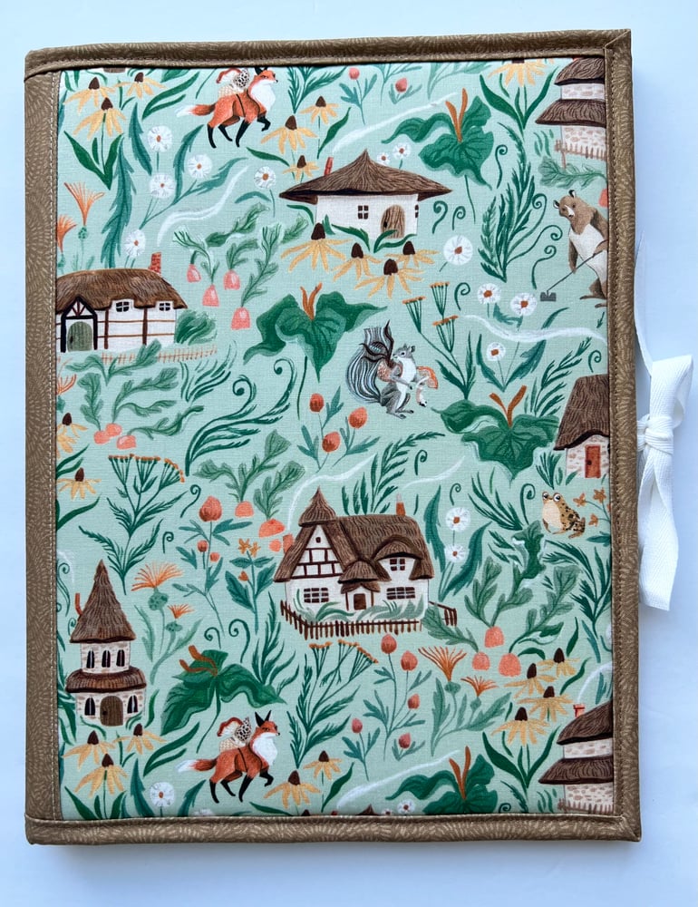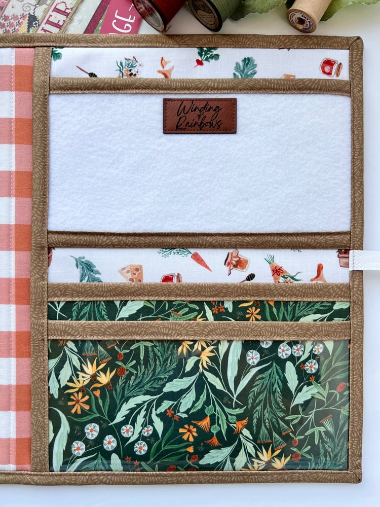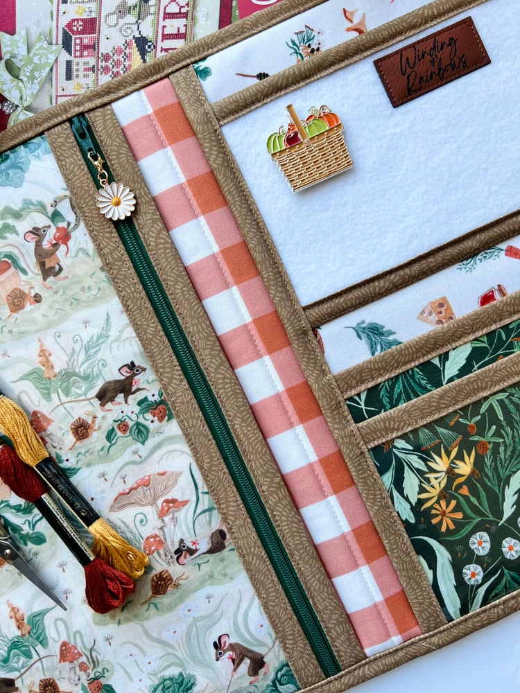 Finished enlarged Ashley Stitch Case. This is a bit wider, taller and has a larger spine opening than the original pattern size. Finished 12.25” H x 19.25” W.