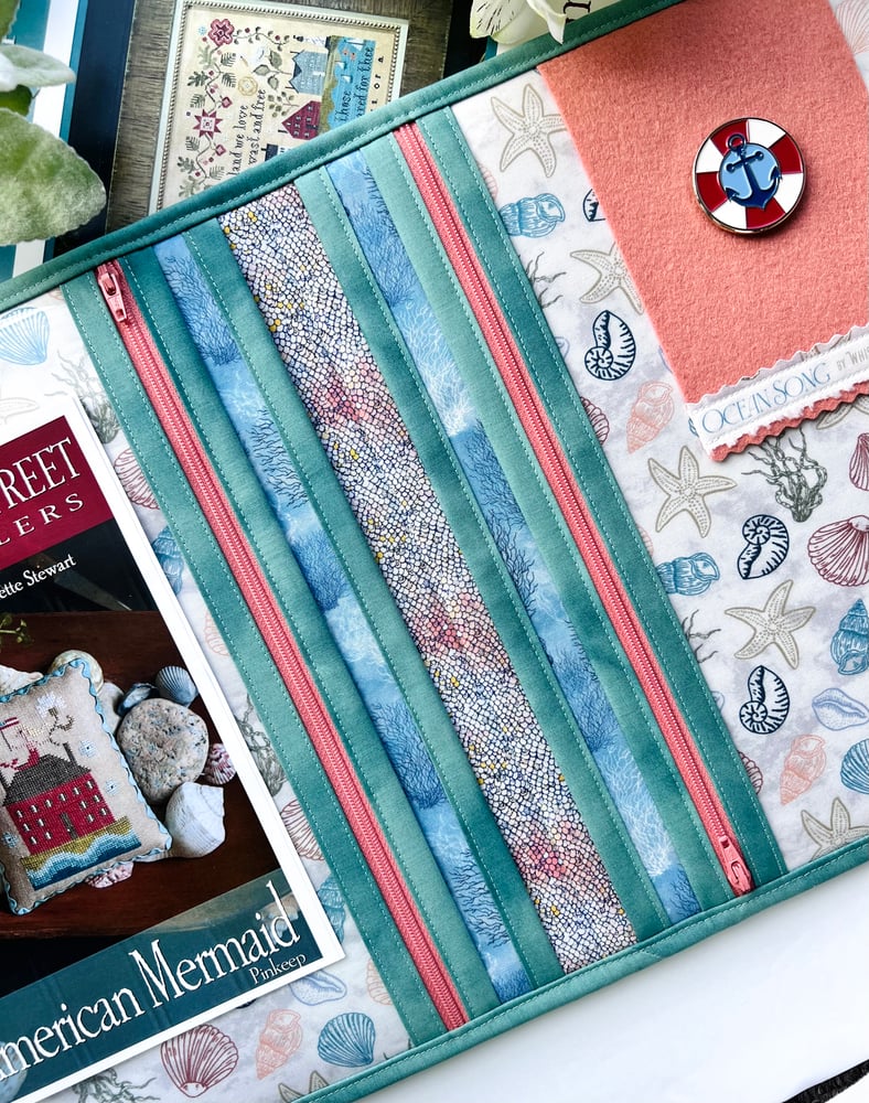 Fabric is Ocean Song by Whistler Studios for Windham. I’ve been drawn to ocean decor and stitching for a couple years now, so I love this one!